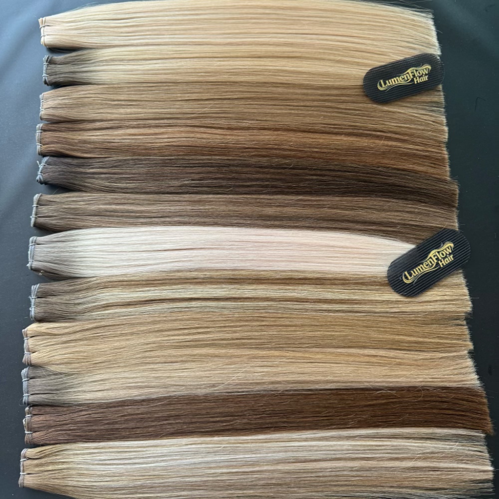 Genius Wefts can be cut freely to customize width without shedding after cutting. They are also reusable, making them a more cost-effective choice than hand-tied wefts while maintaining the same flat, natural finish. - Premium Hair Quality