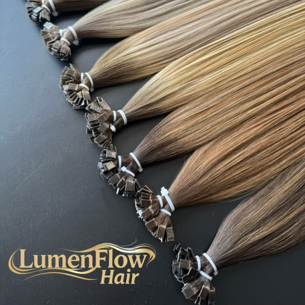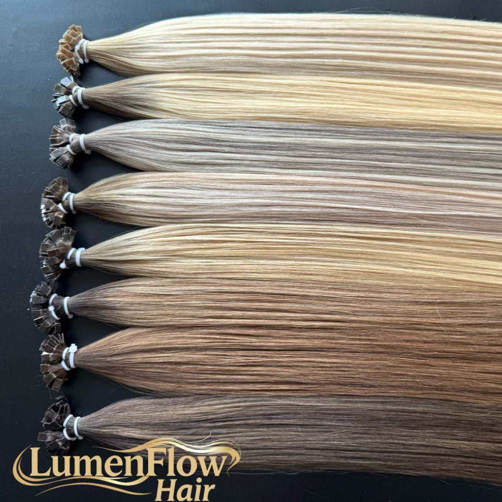 As a professional Flat-Tip Pre-Bonded Hair Extensions manufacturer, all tips are made with premium Italian keratin, ensuring strong bonding performance and extended wearing life. The keratin tips provide a secure hold while remaining gentle on natural hair. - Premium Hair Quality