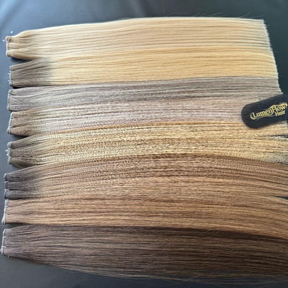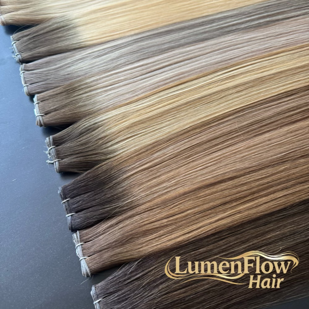 Genius Wefts can be cut freely to customize width without shedding after cutting. They are also reusable, making them a more cost-effective choice than hand-tied wefts while maintaining the same flat, natural finish. - Premium Hair Quality
